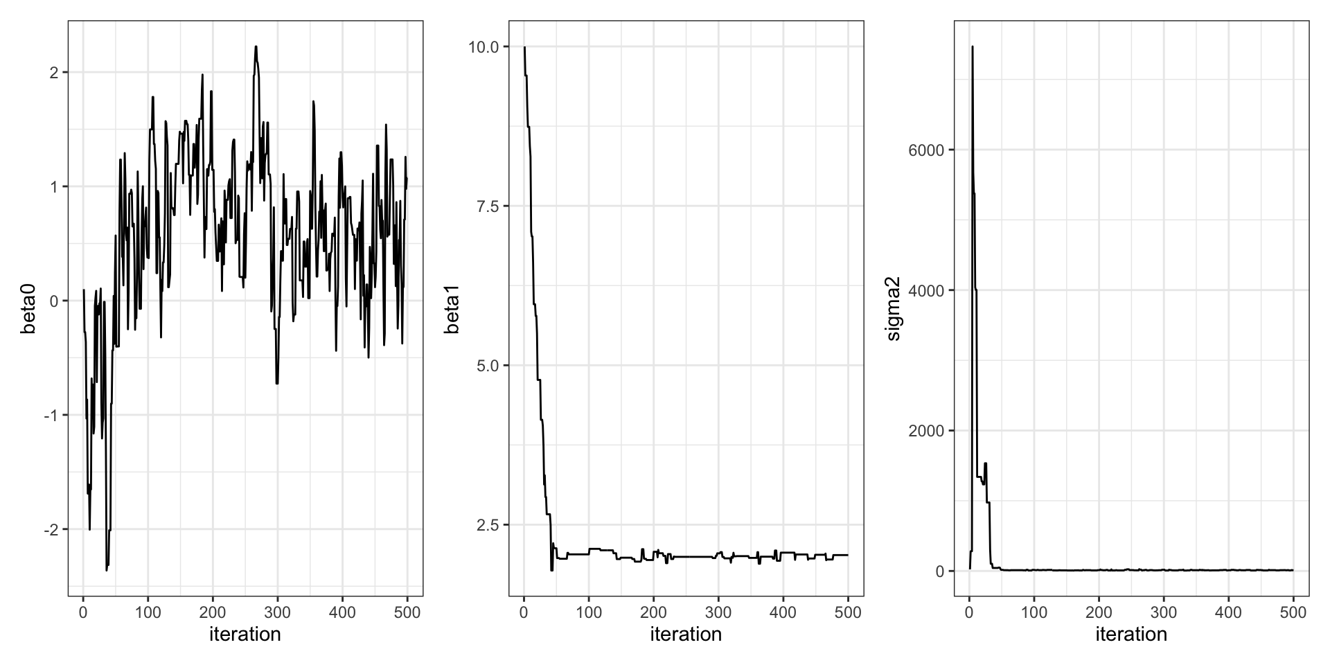 labs(x = "iteration", y = "sigma2")